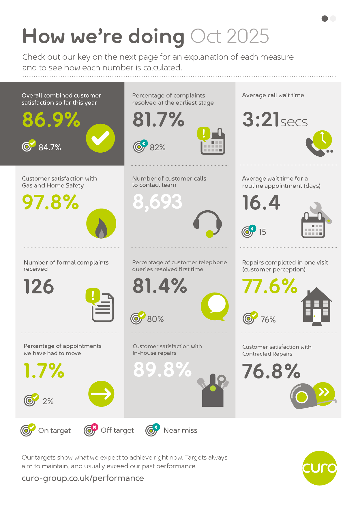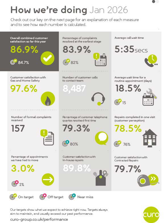 Here's the latest 'at-a-glance' summary of our performance at Curo. These regular performance snapshots look at how we're doing across some of the measurements customers have told us matter most.