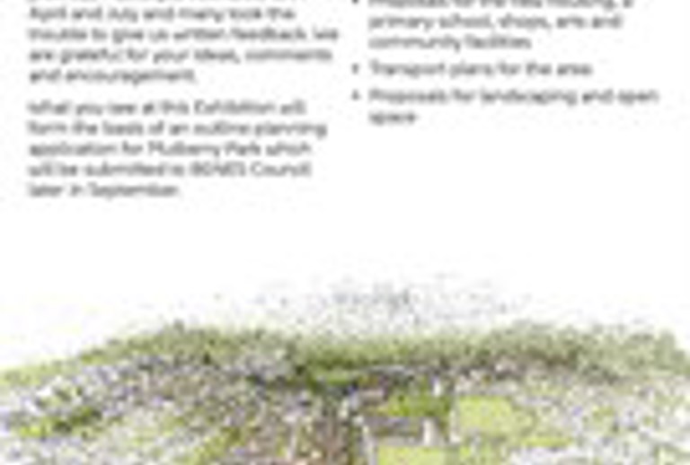 On 12th and 13th September 2014, we held a public exhibition of the outline planning proposals for Mulberry Park. Around 400 local people attended. If you were unable to attend our exhibition, you can view the proposals here.