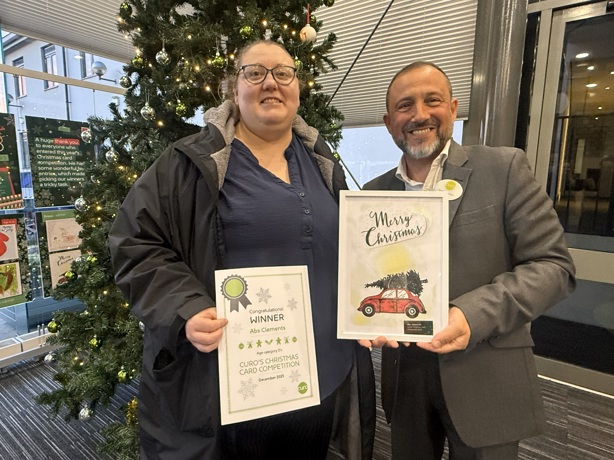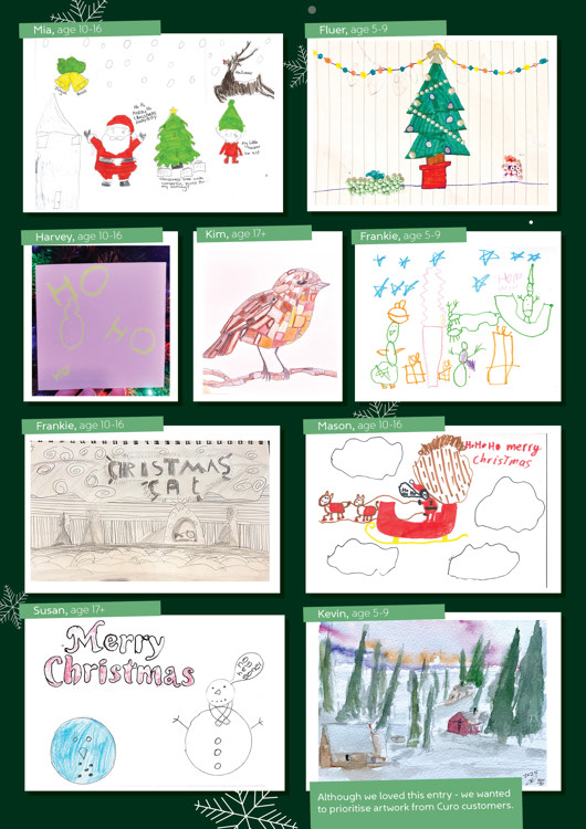 Here’s something to get you in the festive mood – a selection of amazing artwork submitted by Curo customers for this year’s Christmas card competition. We picked a winner and runner up in each of the four age categories and invited them all to our offices at the Maltings to pick up their prizes and enjoy some festive nibbles.
