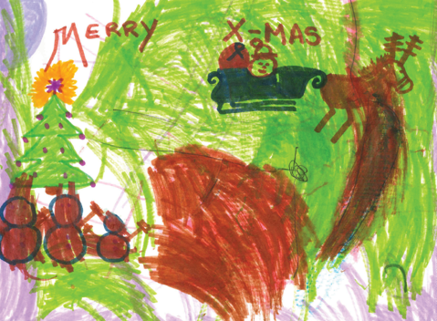 Congratulations to Bennie’s sister, Charlotte, for this lovely picture of Santa out doing some important deliveries with Rudolph, which we picked as our winner in the 5 to 9 age category.