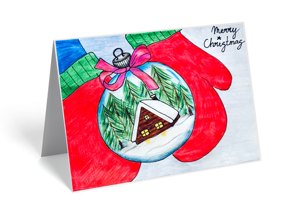 This year’s winning Xmas card artwork was created by Oskar, who is 14 years old. Oskar’s artwork transported us to an atmospheric winter landscape. We loved the inventiveness of the design and the wonderful technical execution.