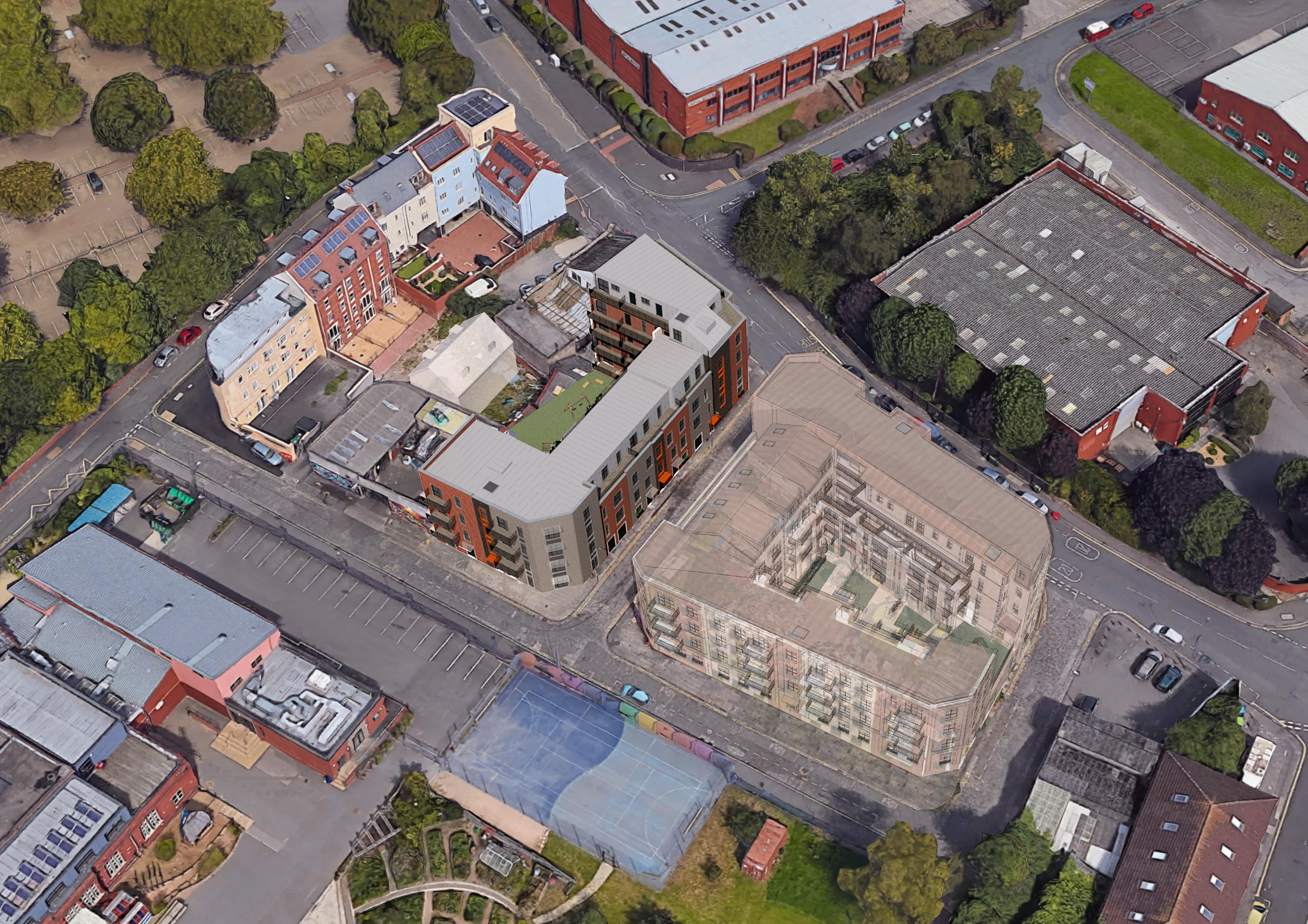 Artist's impression - aerial view of the new homes at Midland Road, Bristol.