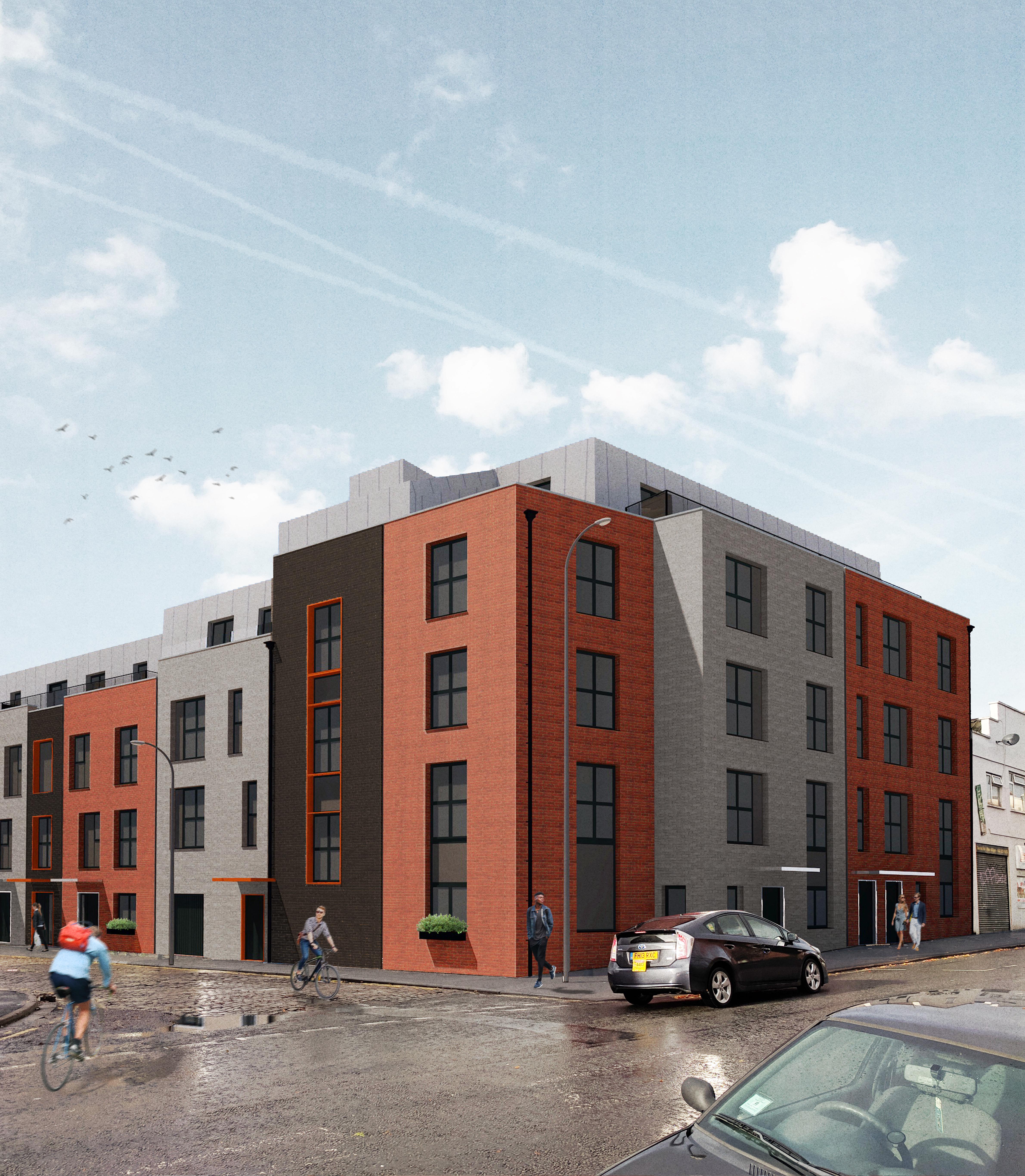 Image above: Artist's impression - street view of the new homes at Midland Road, Old Market, Bristol.