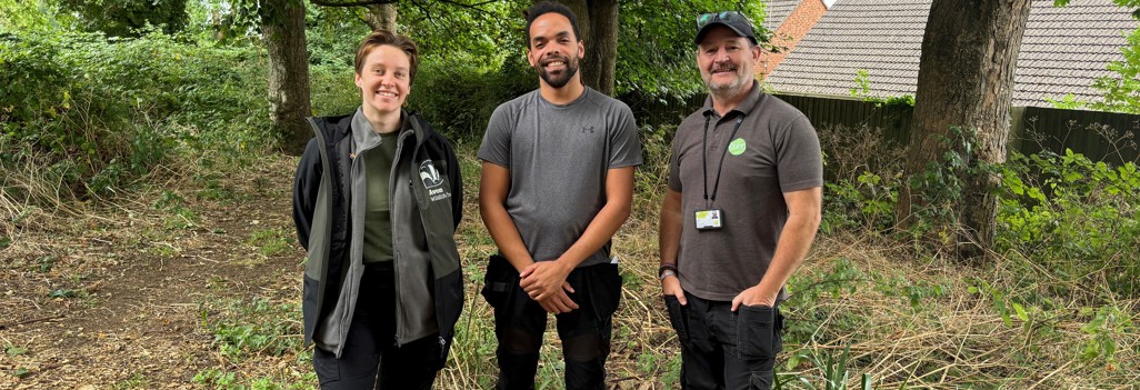 Pictured, from left: Rhea Warner - Community Organiser for Avon Wildlife Trust’s Nextdoor Nature project, Gordon Stuart - Curo Senior Senior Arboriculturalist and Contracts Manager, and Henry Yates - Curo Estates Adviser at The Plantation in Writhlington